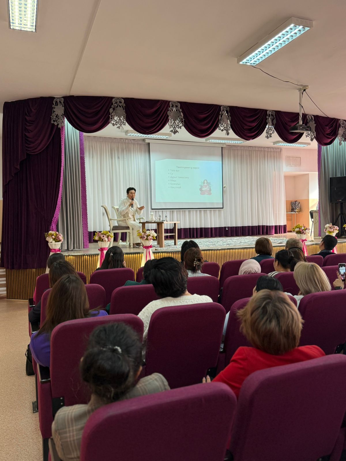 Сондай-ақ «2020–2024 жж. дерек бойынша Қазақстан, өкінішке қарай, әлем елдері ішінде ажырасу деңгейі бойынша екінші орында. Бұл – әрқайсымызға ой салатын ауыр шындық. Бүгінгі шараның тақырыбы «Ата-ана баланың айнасы» деп жақсы қойылған. Дәл қазір осы балалар үлгі етіп қарайтын айна, ата-аналарымыз ажырасып, айналар шытынап жатыр. Мұндай жағдайда балаларымыз кімді үлгі тұтады, қайдан тәрбие алады? Мемлекет шағын отбасылардан тұрады. Осы мәселені алдын алу бойынша кішкене болсын пайдам тисін деген мақсатта “Отбасы берекесі” атты кітабым шықты. 52 жыл отбасылық өмірімде әйел, келін, ене, әже ретінде түйгенім аз емес. Сол ойларымды кітапқа жинақтадым» дей келіп, әр шаңырақтың егесі ер адамдарға, ұйытқысы болар әйел адамдарға ой салар пікірлерімен бөлісті.