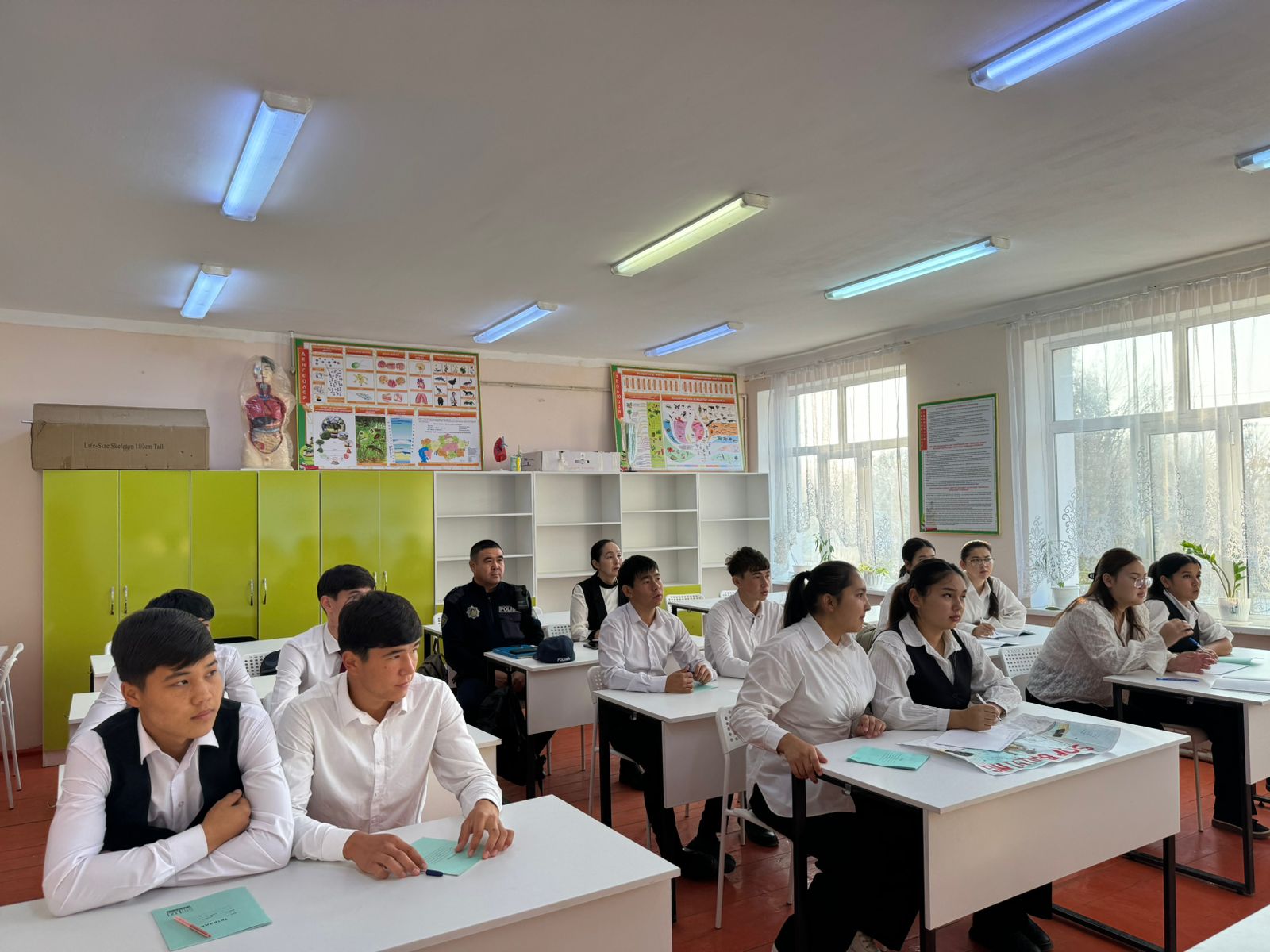 Кездесуде полицейлер жасөспірімдер арасындағы құқықбұзушылықтың алдын алу, сондай-ақ бүгінгі таңда өзекті болып отырған буллинг, нашақорлық және лудоманияның зияны туралы жан-жақты түсіндірді.